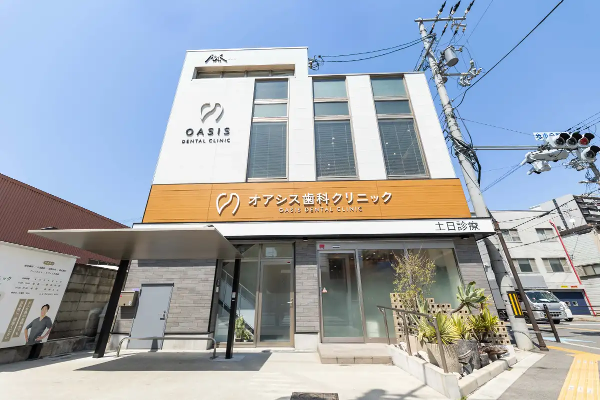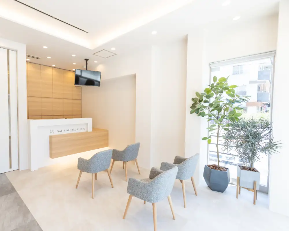 2022年に開院した「オアシス歯科クリニック福島」は、白とベージュを基調とした清潔感溢れる雰囲気が印象的で、2階には予防ルームや特別診療室、カウンセリングルームを完備。屋上には人工芝が広がっている。
